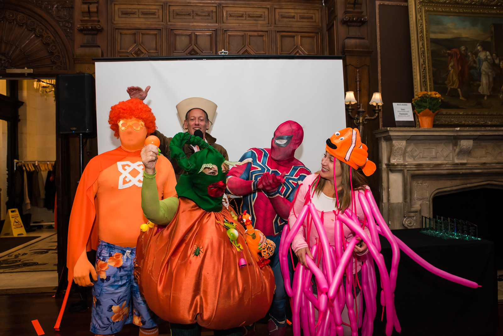 The firm congratulates all award winners, costumed agents and guest speakers.  Pictured L to R:  Costume Contest Winners; Centerpiece Winner; #FollowTheOrange Socks;  Dana Nowick; Tessa Hultz