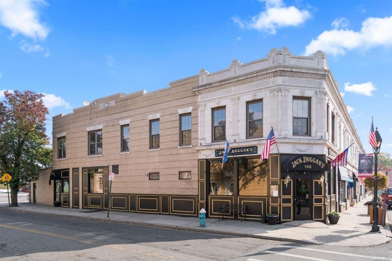 Edit mortgage details for a more accurate paymentHave you ever wondered what the secret is to running a successful bar and restaurant for many years? Its owning the building. This property has housed a thriving bar and restaurant since 1926-thats nearly 100 years of proven success! The current owners of Jack Duggans Irish Pub and Restaurant, who have been in business for over 20 years-to no surprise-also own the building. Now, theyre ready to pass the torch. This is the perfect opportunity to own both the building and the business-a dream chance for any entrepreneur looking to step into an established, successful venture. Upon entering the ground level, youll find a vibrant bar and restaurant space, fully equipped to serve patrons. The main dining area is designed for comfort and style, providing an inviting atmosphere for guests. A complete, fully equipped kitchen supports high-efficiency service. Upstairs, a beautifully appointed private party room offers an elegant setting for special events. This space features a full bar and a cozy fireplace, creating the perfect ambiance for intimate gatherings, celebrations, or exclusive dining experiences. The room is flooded with natural light, thanks to a charming skylight. Additionally, the party room may be converted into apartments, providing a unique opportunity for mixed-use development. The basement adds operational value with extensive storage, including walk-in freezers and an office to manage the business efficiently. Almost everything you see is included with the sale, from all the expensive commercial equipment and TVs to the furniture and fully equipped kitchen, restaurant and party room that features a second full bar. While liquor and beer are separate, the property comes with everything else you need to hit the ground running and be open for business the day you take ownership. Such tremendous value. Outside, this high-visibility corner property is ideally situated beside the Long Island Rail Road station and just minutes away from the UBS Arena, Belmont Park redevelopment, and new retail and entertainment complexes. Plus, with a convenient public parking lot out back, its a prime location for customers. This is the perfect opportunity to own both the building and the business-a dream chance for any entrepreneur looking to step into an established, successful venture. Schedule your private showing today.
