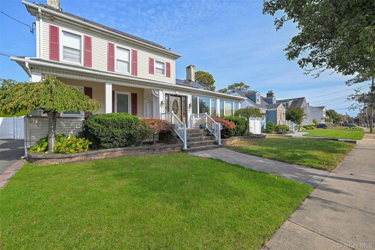 Bright and spacious Colonial on a quiet Merrick block. Five comfortable bedrooms and two full baths give you the space you need. The main level features a sunlit living room, dining room, and an eat-in kitchen that opens through sliders to an incredible backyard. Enjoy an oversized deck with a covered lounge, grill area, and a wide, private lawn that is perfect for gatherings and play. Charming front porch for morning coffee. Close to the LIRR, parks, shopping, Sunrise Hwy, and Meadowbrook Pkwy. A move-in-ready Merrick home with room to live, work, and entertain.