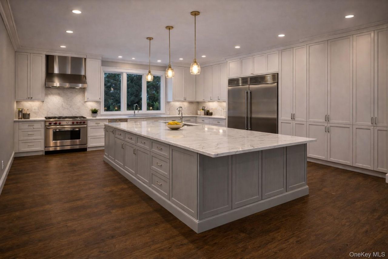 Exceptional new construction in a desirable Long Island neighborhood, featuring a full front brick with elegant stone-work pillars and stucco sides and rear. Offering approximately 5,000 sq ft of living space on a 7,200 sq ft lot, this home delivers luxury, scale, and modern design. A wide entry with a custom door welcomes you into a dramatic double-height foyer with chandelier. Designed with 10-ft ceilings throughout, the home includes central air, central vacuum, and gas cooking. The thoughtfully designed layout offers 5 bedrooms and 5.5 baths, including a first-floor bedroom with an attached full bath and closet, ideal for guests or multi-generational living. Walk-in closets, a convenient powder room, and second-floor laundry add everyday comfort. The second floor features a private primary master suite complete with a luxury bath offering a soaking tub, separate standing shower, and a spacious walk-in closet. Additional bedrooms are well-appointed with attached bathrooms, including two bedrooms. The main level offers a formal living room, a spacious family room, and a chef's kitchen with high-end finishes, stainless steel appliances, a striking 10-ft center island, and a pot filler over the gas stove for added convenience. A separate dining area opens to sliders leading to the backyard-perfect for entertaining or relaxing in your own gazebo. The fully finished basement includes 9-ft ceilings, a separate entrance, and a full bath, ideal for recreation, home office, or additional living space. Additional highlights include Andersen windows, premium finishes throughout, and a 1-car detached garage. Photos are virtual renderings. A rare opportunity to customize finishes and create your dream luxury home in Long Island. All pics are virtually generated, actual will be different