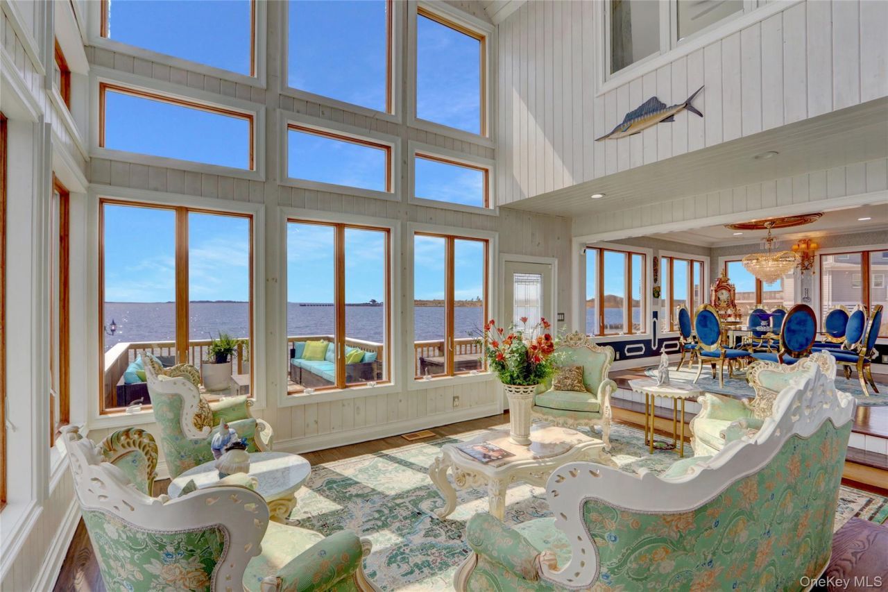 Get ready to drop anchor-Boating Season 2026 is officially on the horizon, and there is no better place to dock than this architectural masterpiece on the Great South Bay!Located on its own private peninsula, this 5-bedroom, 4,935 sq. ft. estate is the ultimate home base for captains and coastal dreamers alike. With 122 feet of brand-new bulkhead and a private boat slip, your fleet will be water-ready the moment the temperature rises. Whether you're a fishing pro or a sunset cruiser, this is the park and play lifestyle you've been waiting for.Inside, the views are just as spectacular as the voyage:Captain's Quarters: Five luxury en-suites, including two primary retreats, ensure everyone has a first-class stay.The Galley: A Chef's kitchen featuring Thermador appliances, dual refrigerators, and a built-in coffee bar to fuel your early morning departures.The Lounge: Soaring walls of windows and a sleek built-in bar make the living area the perfect spot for Aprs-sail entertaining.Outdoor living is where the 2026 season truly comes alive. From the gravel-hardscaped bayfront terrace to the expansive Rooftop Deck, you'll have a front-row seat for local fireworks and 360-degree panoramas of the bay.Why wait for summer? Secure your spot on the water now and spend the spring planning your first voyage. For more details or to schedule a private tour.What's the depth of the boat slip and water at the bulkhead?What are some popular boating destinations accessible from this location?Tell me more about the Rooftop Deck