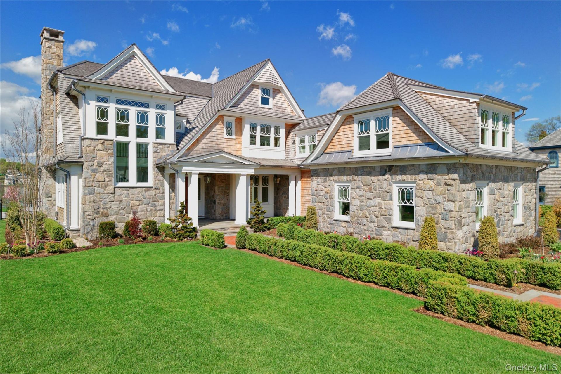 Extraordinary new construction on Manhasset Bay spanning approximately 6,700 square feet, defined by exceptional craftsmanship and sweeping, unobstructed water views. A dramatic stair tower sets the tone. The main level features a formal dining room, living room with fireplace, and a chef's kitchen with dual islands, connecting to the great room and informal dining area. A walk-in pantry, private office, and mudroom with custom built-ins are complemented by two powder rooms. Upstairs, a gallery leads to a striking primary suite with a private deck overlooking the bay, spa bath, and expansive closet. Three additional en-suite bedrooms, a laundry room, and an entertainment lounge complete the level. An unfinished third floor offers future potential. Outdoor living includes a covered porch and fireplace, Lynx outdoor kitchen with grill, sink, and refrigerator, and a heated, saltwater Gunite pool with spa and gas firepit, all oriented with breathtaking bay views. Unobstructed water views, with permit for dock.